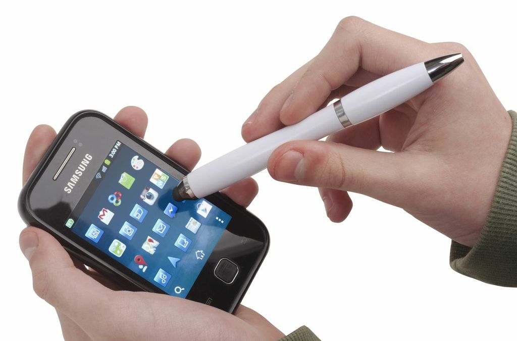 Ø 0,5 x 13,5 cm. Bolígrafo plástico giratorio con detalles metálicos. Clip metálico. Puntero para pantallas táctiles. Tinta azul.