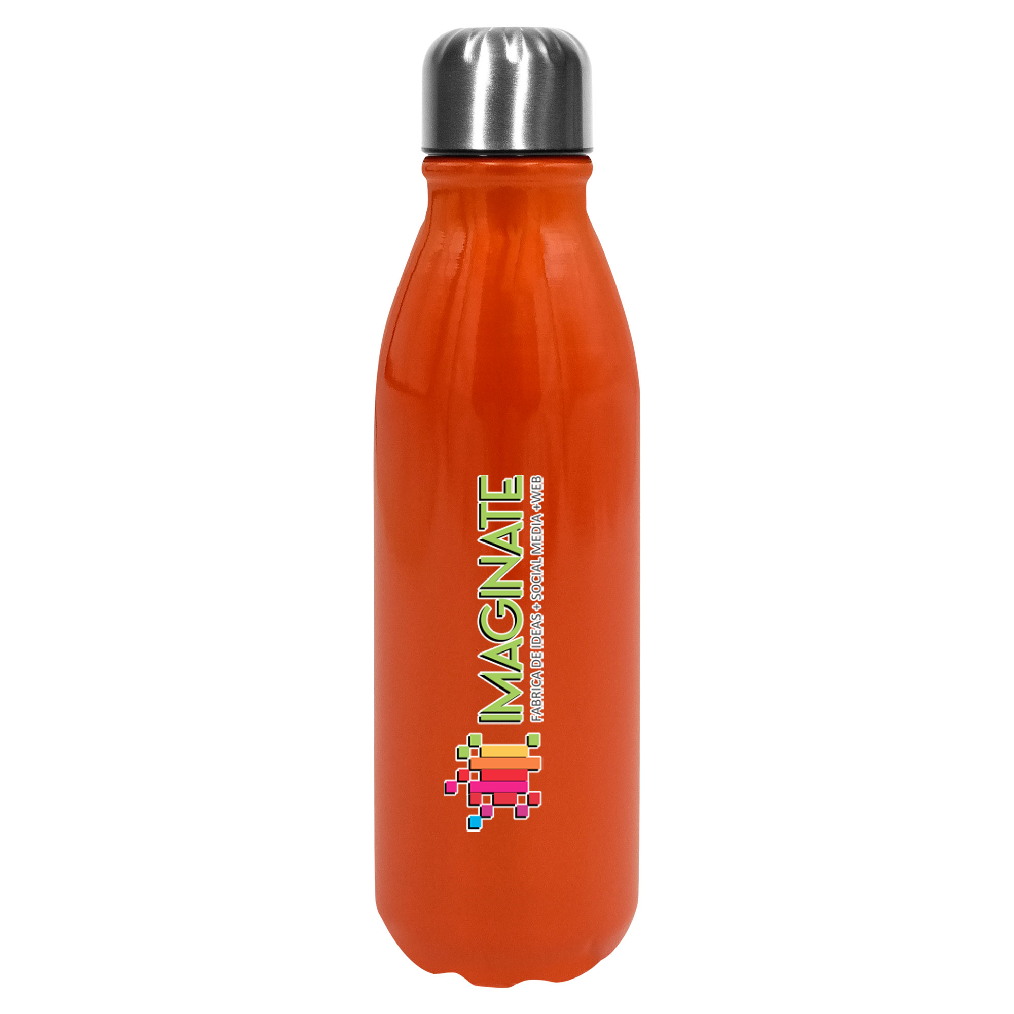 Ø 6 x 22,5 cm. Capacidad 550 ml. Aluminio. Botella de aluminio, cuerpo de diferentes colores.Tapa de acero a rosca.