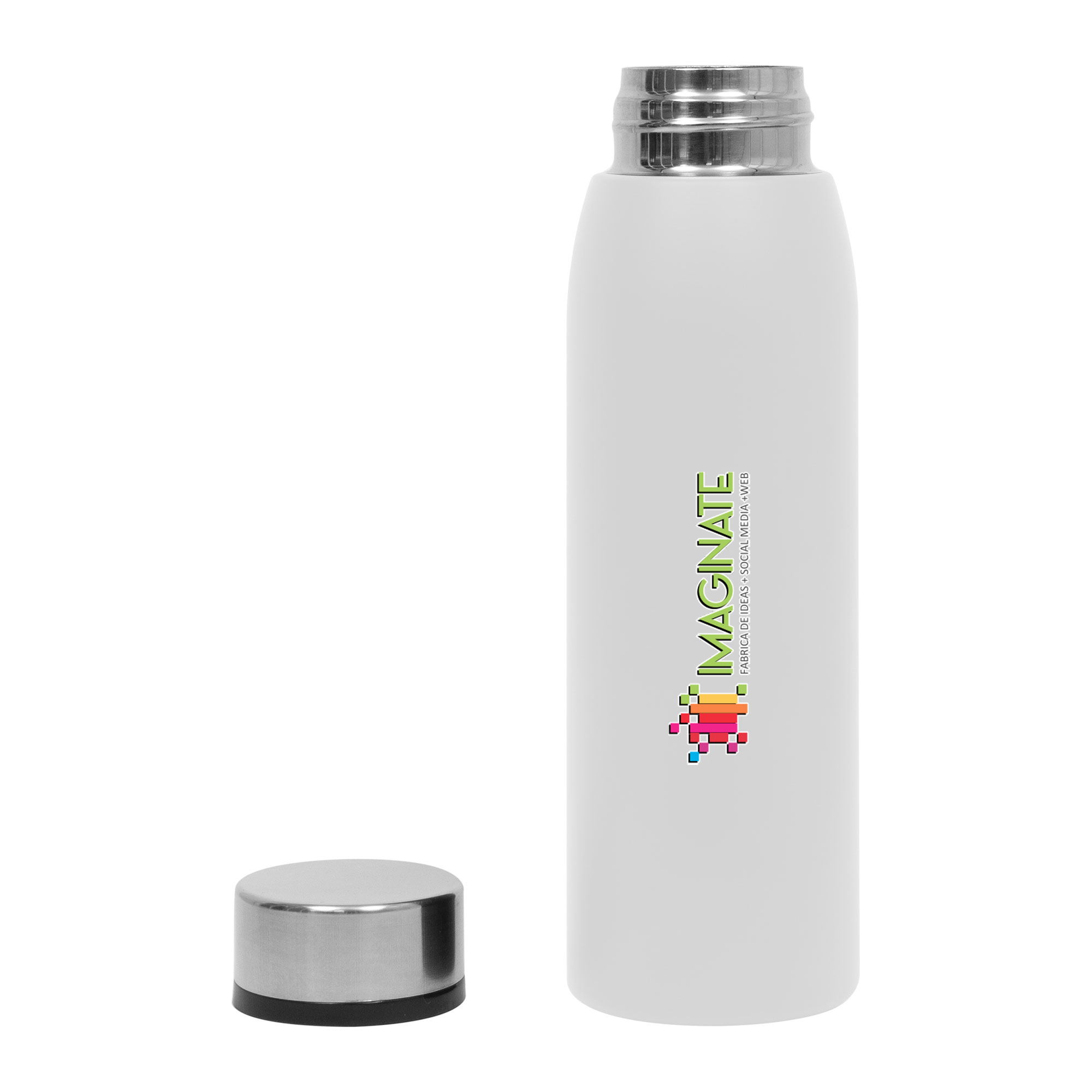 Ø 7 x 23,5 cm. Capacidad 500 ml. Botella doble pared, sellada al vacío. Interior de acero 304 y exterior de acero 201. Cuerpo color negro y tapa a rosca de acero. Mantiene hasta 12 hs la temperatura de las bebidas calientes y 24 hs de las bebidas frías. Presentación en caja de regalo.